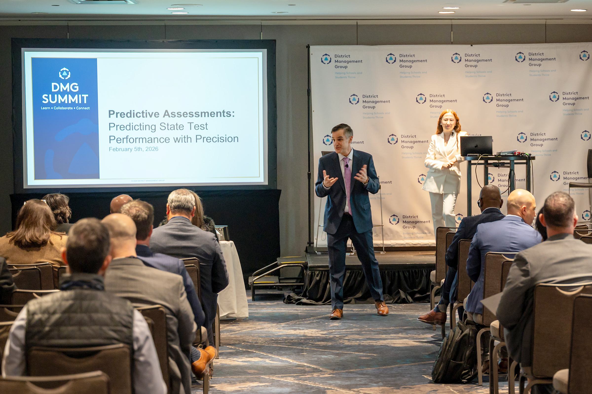 Districts often don't know if students will pass their state tests until after the fact, nor they do they have actionable recommendations to make adjustments throughout the year to improve student proficiency. In this session, DMG's Predictive Assessment team shared how our Predictive Assessment tool uses AI and ML systems to predict state test performance with 80% accuracy and provide specific and actionable recommendations for teachers within just a couple days of students taking the test. Students take 10 assessments, 10 times, of 15 minutes each throughout the year, and educators are able to intervene more effectively and transform their instruction.