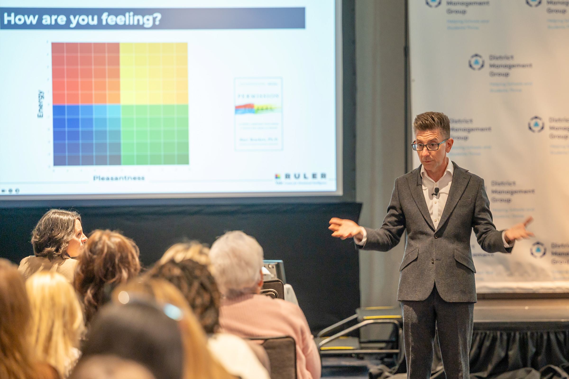 Dr. Marc Brackett, founding director of the Yale Center for Emotional Intelligence, discussed emotion regulation as a foundation to effective leadership, well-being, and high performance. Dr. Brackett offered a roadmap for district leaders to create environments where educators and students are empowered to thrive.